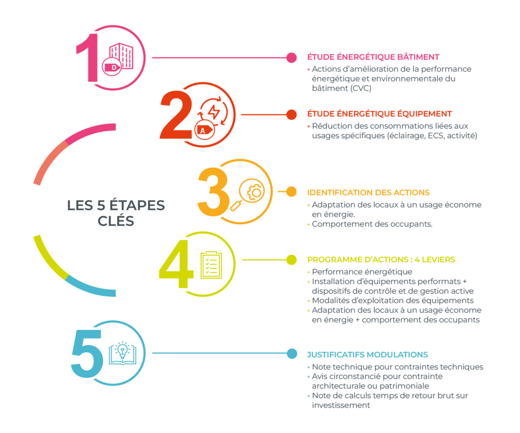 Le marché de la réhabilitation a été profondément modifié par le décret tertiaire. GM Concept met à votre service une équipe d’experts et une méthode éprouvée illustrée à travers ce schéma :